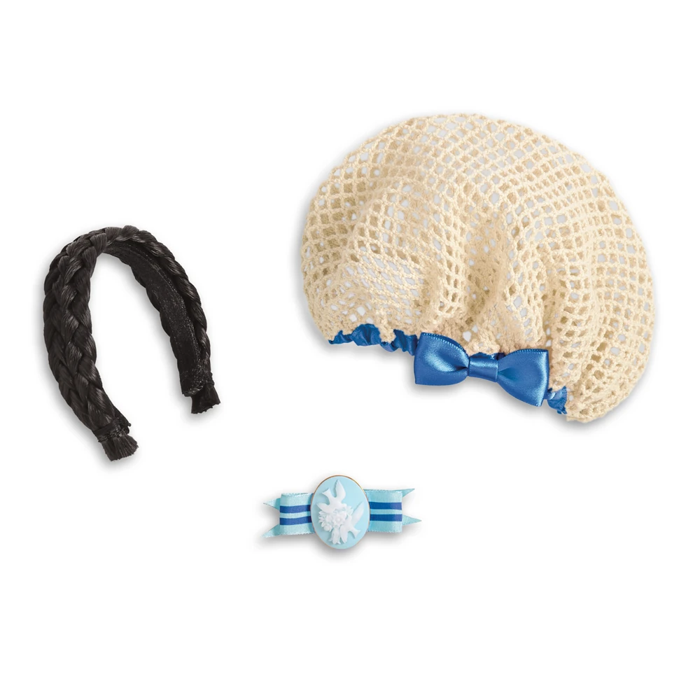 Addy's Hairstyling Set was introduced to Addy's Collection in 2014, changed later that year, and retired in 2016. Retail cost was $22.