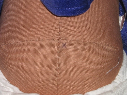 Dolls and furniture are marked with black Xes or dots in a non-obtrusive area to indicate they were purchased at the sale. Cloth-bodied dolls are marked on the bottom near the seams; Welliewishers are marked at the center back of the molded panties; furniture is marked underneath. Clothing and boxes are slashed through the UPC barcode, and some tags may be slashed or blackened. This is to prevent returns to the store or through American Girl.