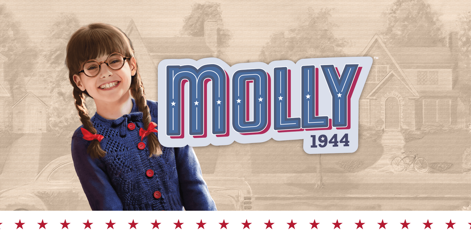 Molly McIntire is one of the first three Historical Characters, representing the late World War II Era. Molly was released in 1986 at the launch of Pleasant Company along with Samantha Parkington and Kirsten Larson.