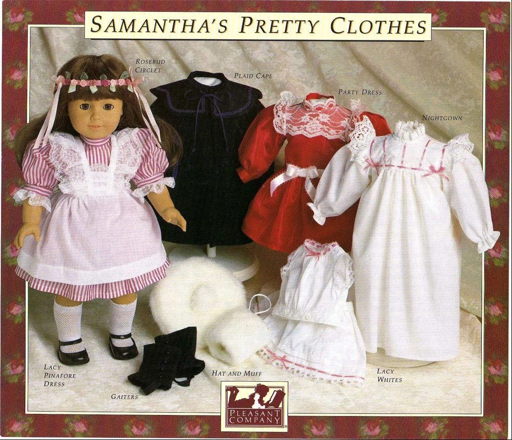 Samantha's Patterns are a set of American Girl Patterns. They were introduced to Samantha's Collection in 1989 and retired in 2001. The patterns allow skilled tailors to make selected components and outfits in Samantha Parkington's collection. Retail cost was $20.